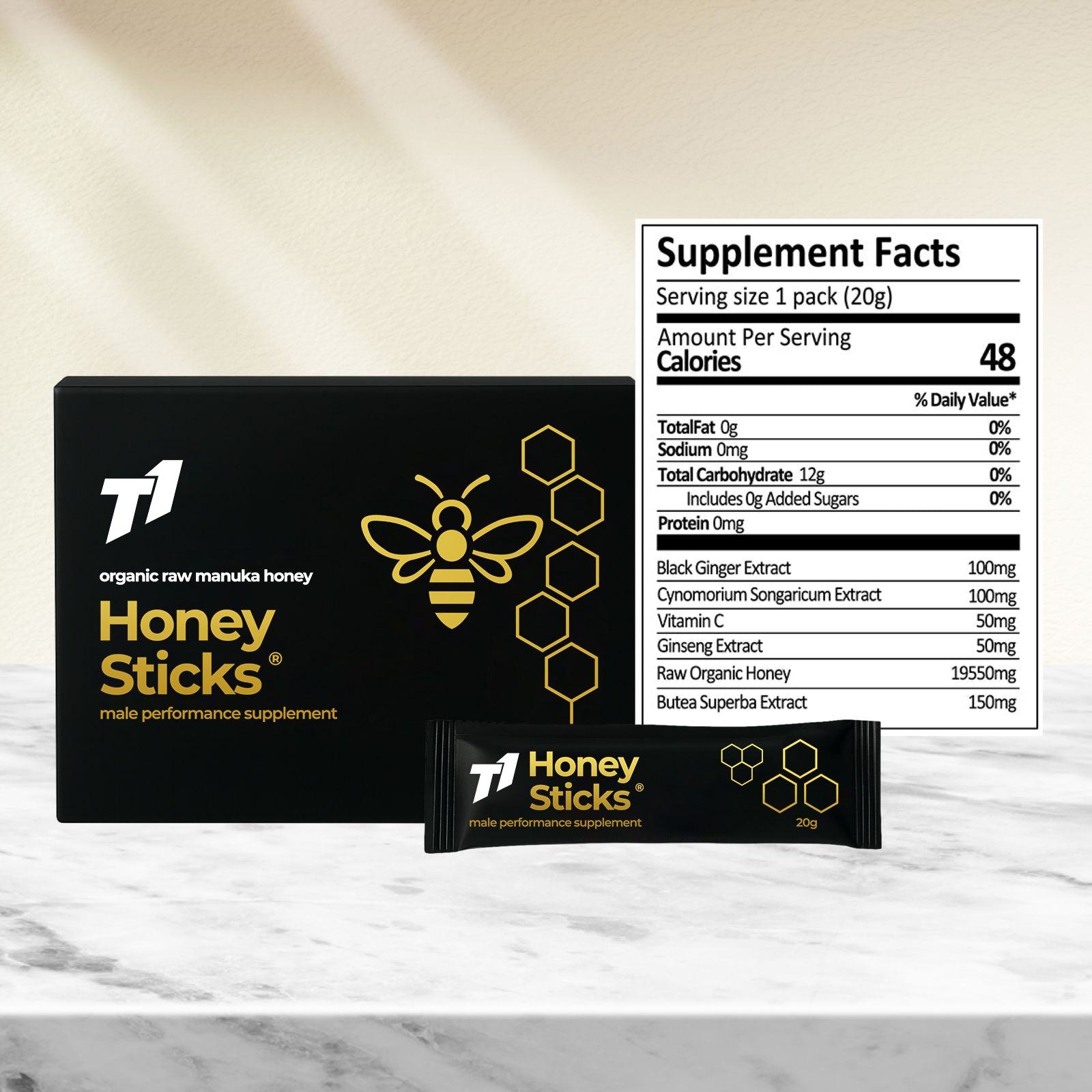 T1 Honey Sticks® was made for men who expect more — from their supplements, and from themselves.